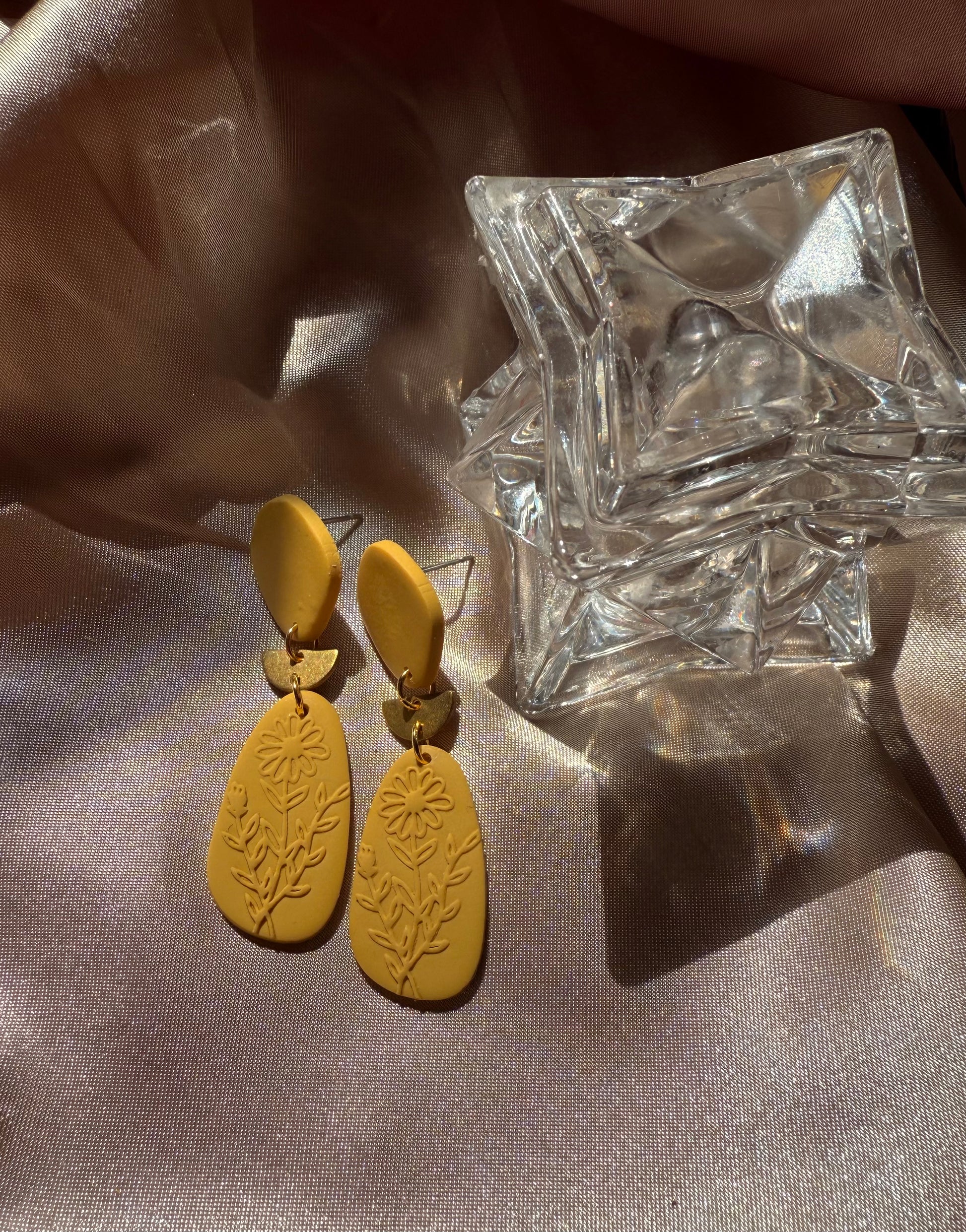 Created with polymer clay for a light weight earring, stainless steel posts, and gold filled findings for best comfort.